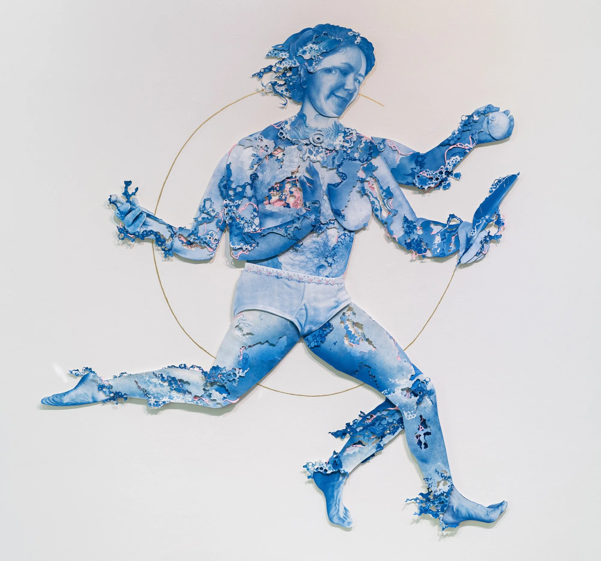 In the wake of numerous transphobic executive orders since the inauguration, I was drawn to create a nurturing Gender Queer Deity to pray to when feeling overwhelmed, isolated, and scared. The resulting project, You are the Beacon, You are the Storm, combines nine gender queer individuals from my life who have shone the way for what is possible by being their authentic selves. Each collaged limb is made by leaving I leaving the negatives outside for days to be exposed to the elements, collaborating with nature to alter the negatives as they will, and incorporating those changes into my final collage. The tension between holding on and letting go, searching and finding, confusion and knowing, are the guides to this work. The resulting figure serves as a resting place where difference and belonging exist together. The altar as part of the installation contains a prayer book, written by those photographed, and added to by those who feel called during its installation, creating a polyphonic invocation to this many faced being.
